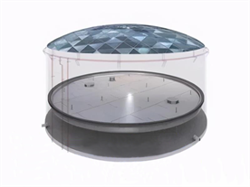全接液內(nèi)浮盤指內(nèi)浮盤本體漂浮在液體中有一定的浸液高度,浮力單元之間及與各部件的連接部位有可靠的密封措施,形成底部全域浸入液體的內(nèi)浮盤。全浸液內(nèi)浮盤包括箱體式、浮艙式、玻璃鋼復(fù)合材料式、全焊接蜂巢芯式及其他形式的裝配式全浸液內(nèi)浮頂。全接液內(nèi)浮盤適用于儲罐內(nèi)直徑5m~48m。